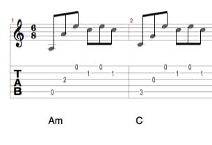 In this video, we play simple fingerpicking patterns (T132) over the C, G and A minor chords to create a beautiful repeating pattern that can be learned in minutes.