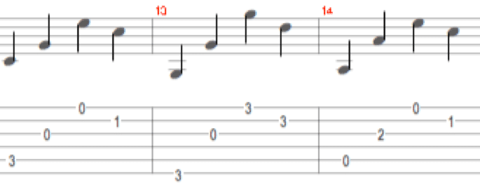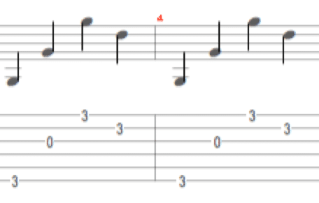 If we put all those together, it sounds like this. Note the thumb will play bass notes on 5th string, 6th string, 5th string